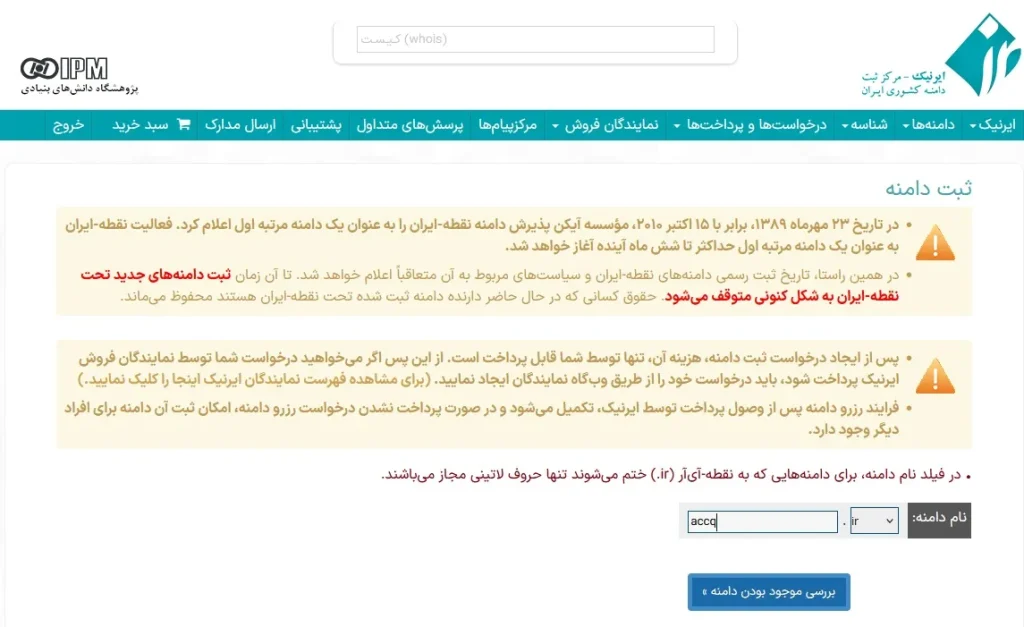 جهت ثبت دامنه میبایست به شناسه کاربری ساخته شده خود در سامانه ایرنیک وارد شویم